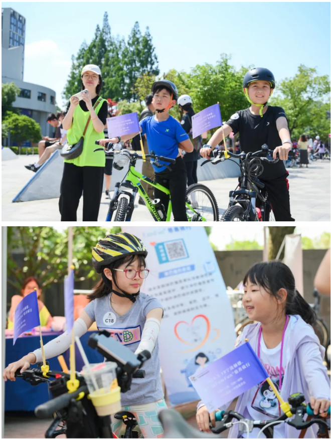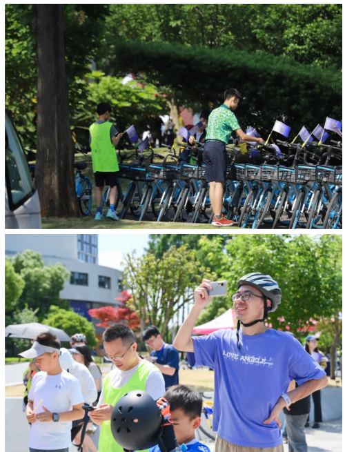 志愿者们一大早就来到学校,准备活动设备,设置义卖摊位,为骑行人员检录、签到、检查车辆,准备补给,还有由家长和老师组成的各路口指引员,以及由家委会组成的巡逻保障车……这个因为爱而走到一起的团队让整个活动井井有条。